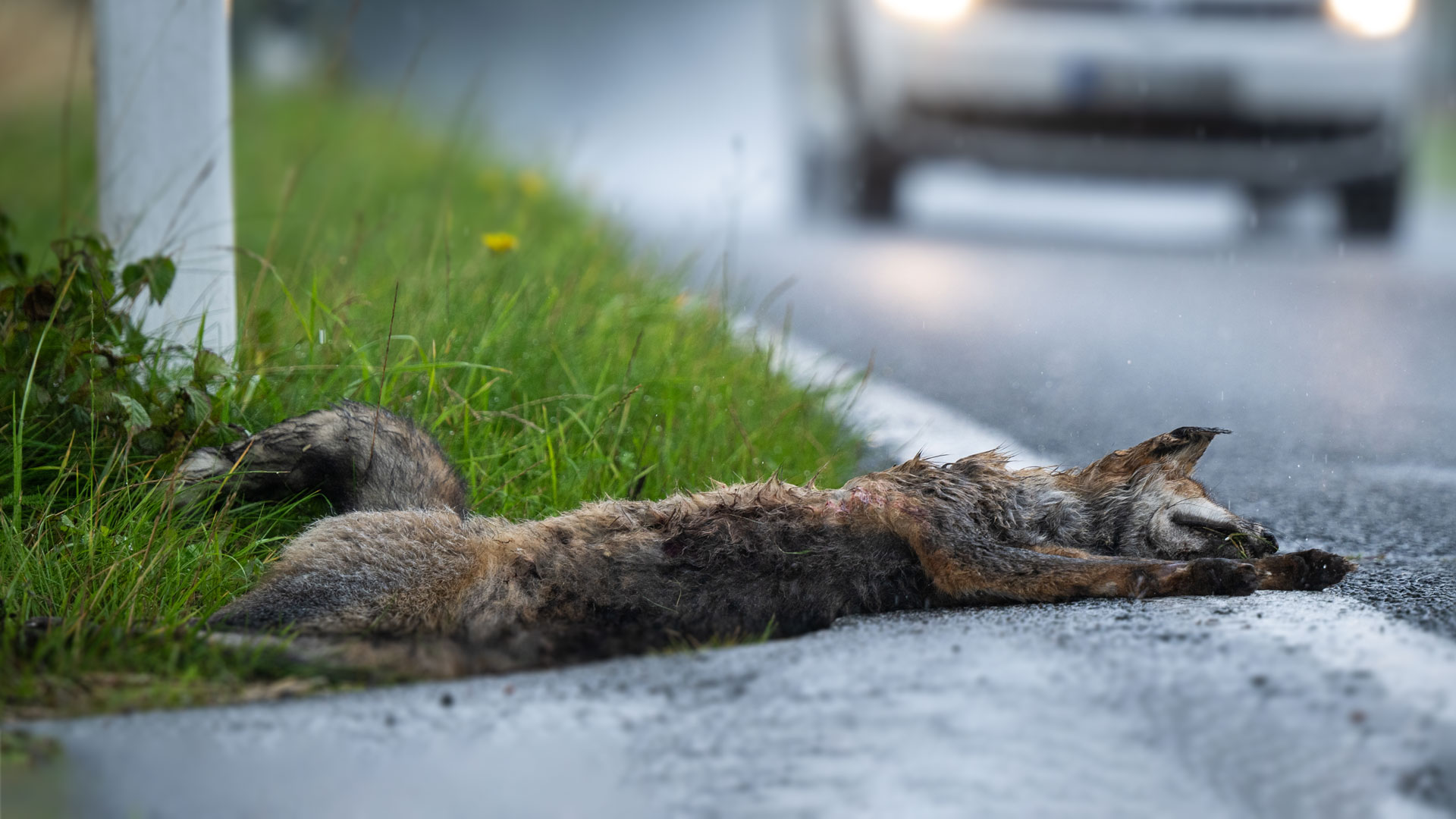 Kurz vor 22 Uhr sind wir nach einem arbeitsintensiven Tag auf dem Heimweg. Die Autobahn ist frei, aber wir fahren langsam. Denn wir ziehen auf unserem Viehanhänger lebende Tiere, die wir gerade erst gekauft haben. Nicht weit von unserer Abfahrt zwängt sich ein Fuchs durch den Wildzaun und springt auf die Fahrbahn. Alles geht so schnell, dass wir den Fuchs mit dem SUV erwischen.